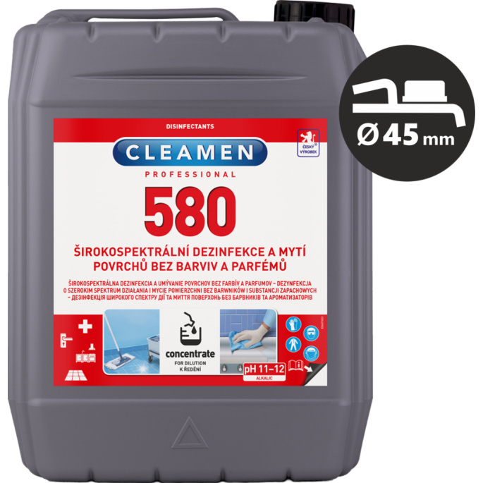 POUŽITÍ: Prostředek je silně koncentrovaný. Používá se v koncentraci 1% - 10%. Na ošetřované a menší plochy aplikujte mechanickým rozprašovačem, na větší plochy pomocí vědra a mopu. Vydezinfikované povrchy, které přichází do přímého styku s potravinami, po uplynutí expoziční doby, opláchněte pitnou vodou.