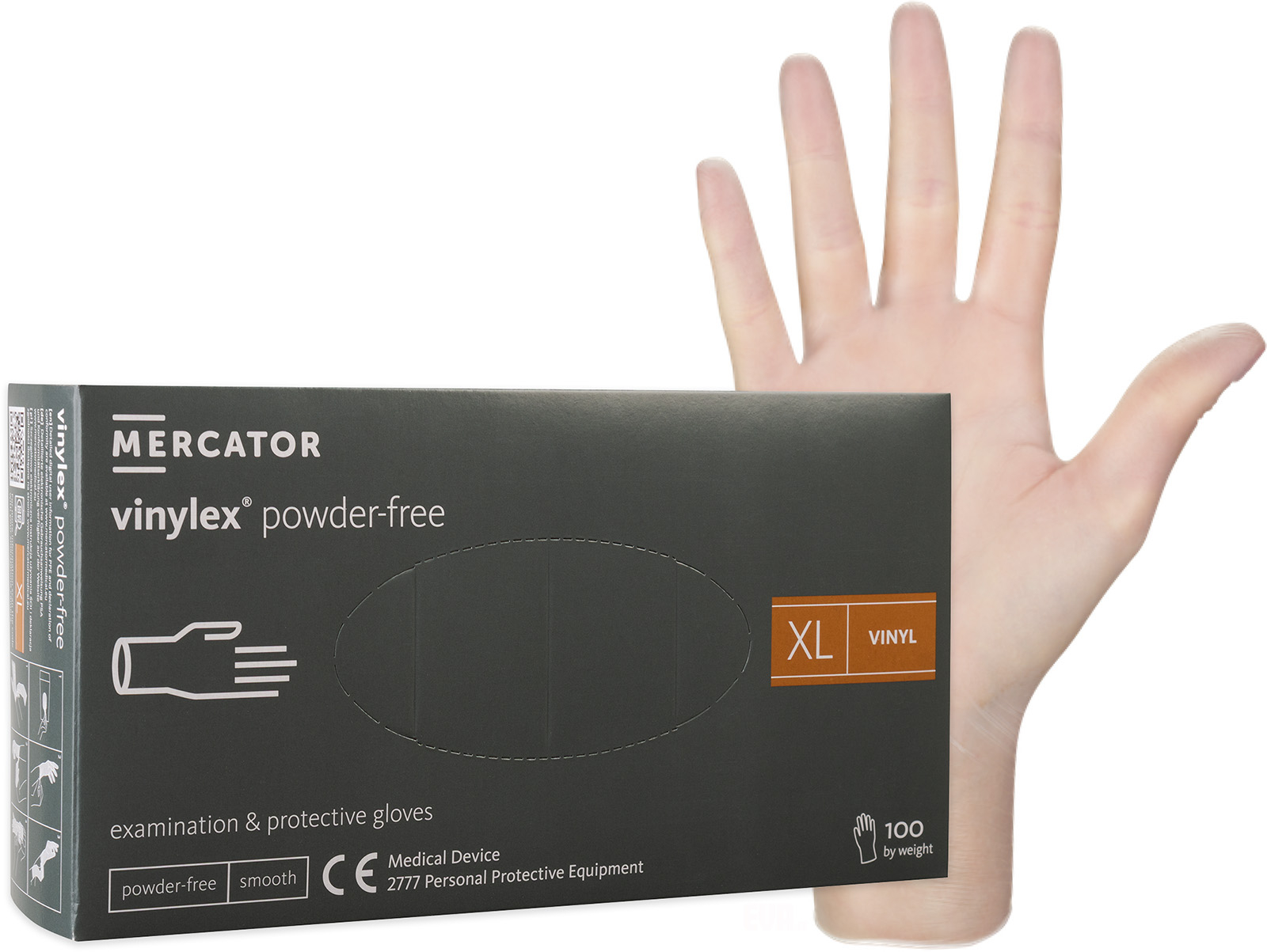 Kvalitní vinylové ochranné rukavice bez latexu určené nejen pro profesionály, vhodné pro osoby alergické na latex nebo s citlivou kůží, bez pudrového prostředku pro usnadnění navlékání i na vlhké ruce. Texturovaný povrch zajišťuje pevný úchop a mimořádnou dotykovou citlivost. Balení 100 ks, velikost XL,